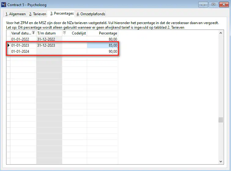 Heb je in 2023 nog geen percentages ingesteld? volg dan de instructie “Toevoegen van percentages in contracten”