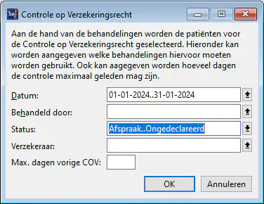 In januari mogen patiënten nog steeds wisselen van zorgverzekeraar en/of verzekering en is Vecozo bezig met het updaten van de verzekeringsgegevens. Om zo weinig mogelijk declaraties terug te krijgen, is het handig een COV uit te voeren bij de patiënten die in januari onder behandeling zijn in je praktijk. Hoe je een COV doet over al je actieve patiënten lees je hieronder: