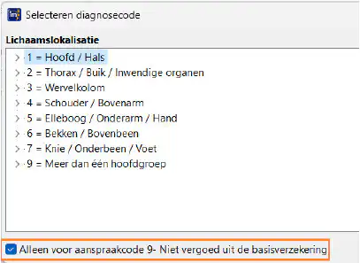 Als je een aanspraakcode hebt gekozen en daarna een diagnosecode gaat selecteren, is het filter onderin het scherm ‘Selecteer diagnose’ ook aangepast: