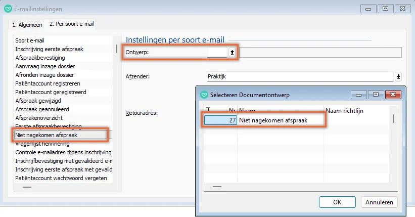 Als een afspraak als ‘niet nagekomen’ is aangevinkt, kan de patiënt een automatische e-mail daarover krijgen.