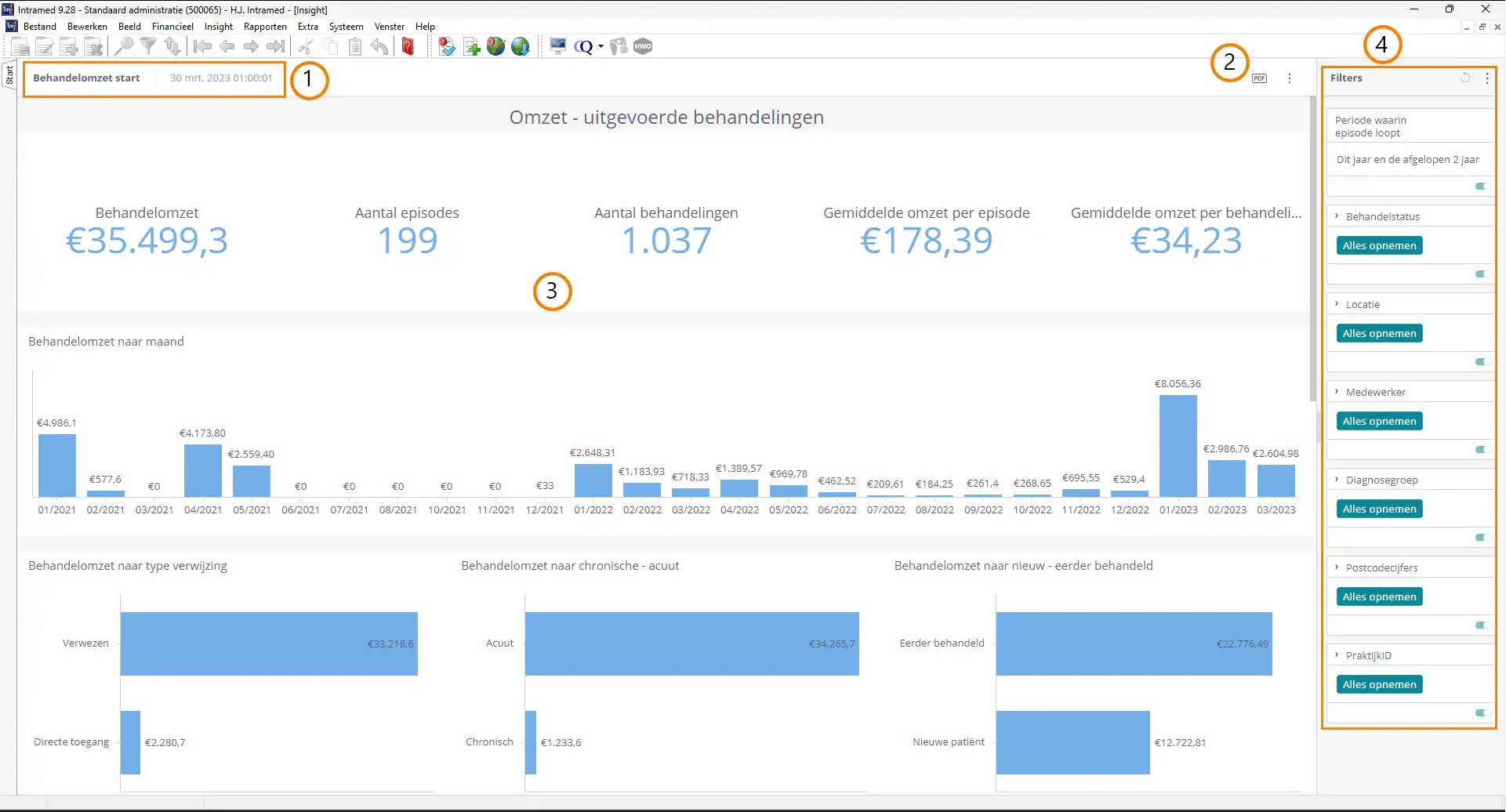 Intramed Insight is een tool waarmee je inzicht krijgt in praktijkprocessen. Door middel van diverse dashboards krijg je o.a. inzicht in de instroom, patiëntpopulatie, omzet en het behandelgemiddelde. Klik rechts op de webinar om een beter beeld te krijgen van Intramed Insight. Voor meer informatie kun je ook kijken op de website van Intramed.