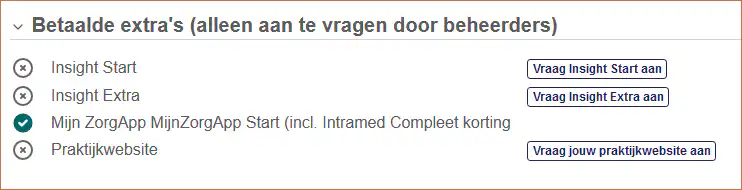Wil jij ook de dashboards van Intramed Insight? Log dan in bij Mijn Intramed. Bij ‘Mijn Producten’ vind je bij de ‘Betaalde Extra’s ‘. Daar word je doorverwezen naar de aanmeldpagina van Intramed Insight.